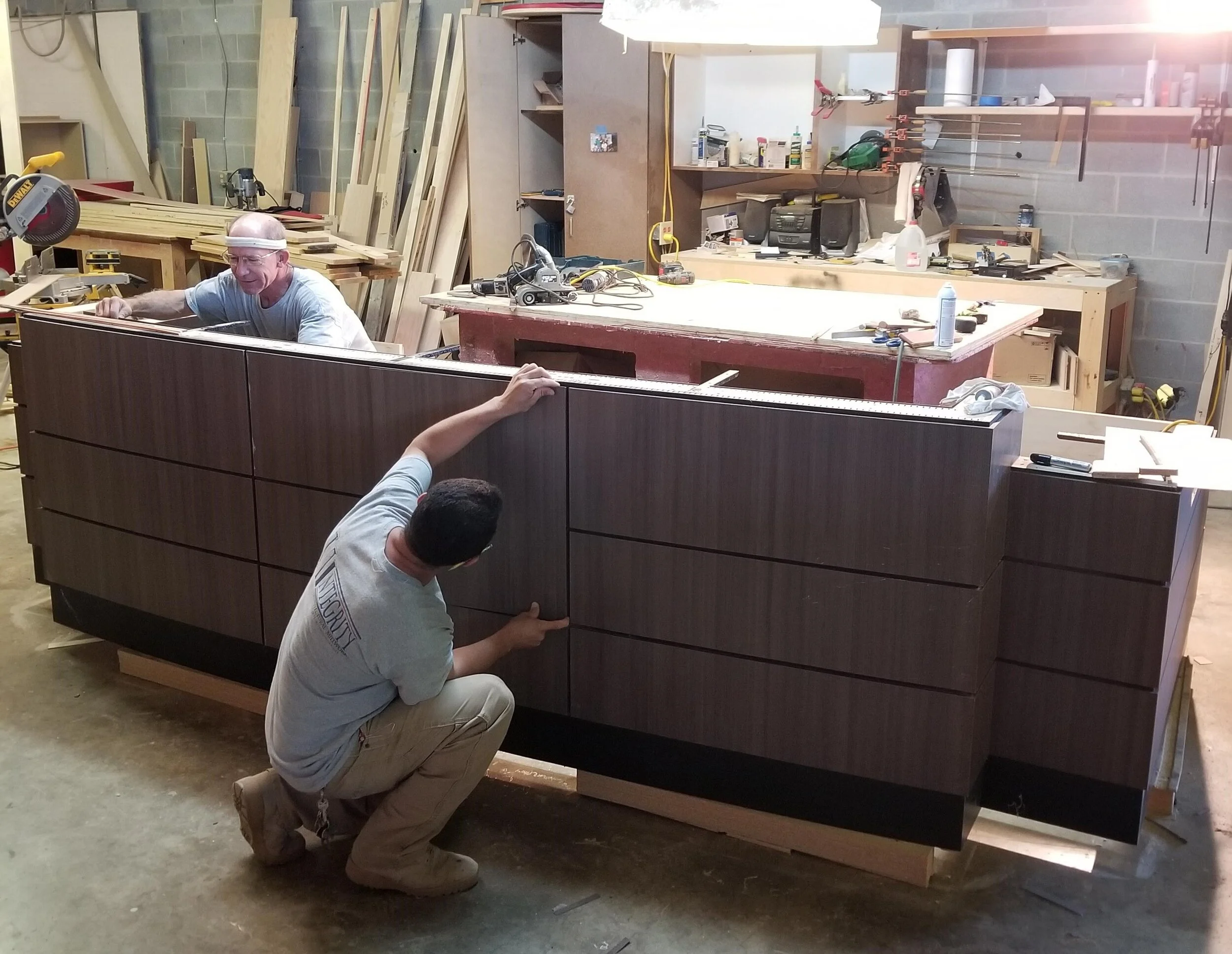 Integrity Architectural Millwork maintains its manufacturing plant in Nashville, Tennessee. Integrity specializes in wood and plastic laminate casework, reception desks, nurse’s stations, architectural paneling and custom mouldings. We also pre-finish hardwoods and veneers to match an architect’s sample. We are members of the Architectural Woodwork Institute (AWI) and hold to AWI’s standards.